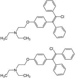 Keywords: (E,Z)-Clomiphene Structural Formulae V.1.svg en Structural formulae of E - top and Z -Clomiphene bottom Clomifen unten own Jü 2010-07-06 Clomifene