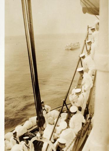 | Keywords: SDASM.CATALOG: Karaberis_0182 SDASM.TITLE: Each sailor waiting their turn to disembark SDASM.DATE: 1934 SDASM.LOCATION: Annapolis, MD SDASM.ADDITIONAL INFORMATION: On the USS Arkansas coming back from Mediterranean training SDASM.CATALOG: Karaberis_0182 SDASM.TITLE: Each sailor waiting their turn to disembark SDASM.DATE: 1934 SDASM.LOCATION: Annapolis, MD SDASM.ADDITIONAL INFORMATION: On the USS Arkansas coming back from Mediterranean training | ||||