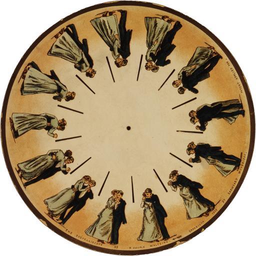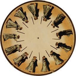 | Keywords: Eadweard Muybridge's phenakistoscope, 1893.jpg <center> background black; text-align center; color white; cellpadding 3 cellspacing 0 - 7 style font-size 120 ; <font color white>Eadweard Muybridge's</font> <font color white>Phenakistoscope</font> A Couple Waltzing<br /> - 160px<br />Original disc background white; color black; font-weight bold; 160px<br/>Original disc white bg 160px<br />Detail view 160px<br />Mirror simulation 160px<br />Spinning disc - 5 style background white; color black; CREATOR Muybridge Eadweard 1830-1904 artist <br /> TITLE The zoopraxiscope - a couple waltzing No 35 title from item <br /> SUMMARY Images on a disc which when spun gives the illusion of a couple dancing <br /> MEDIUM 1 print lithograph color <br /> CREATED/PUBLISHED c1893 14699Y U S Copyright Office Copyright by Eadweard Muybridge expired <br /> SUBJECTS Dance--1890-1900; Locomotion--1890-1900; Optical illusions--1890-1900 <br /> FORMAT Optical toys 1890-1900; Lithographs Color 1890-1900 Exhibited at Moving Pictures The Un-easy Relationship between American Art and Early Film at the Williams College of Art MA and other venues 2005-2007 <small>Call number LOT 10440 item P P Reproduction number LC-DIG-ppmsca-05949 digital file from original print LC-USZC4-7690 color film copy transparency ; Digital ID ppmsca 05949 digital file from original cph 3g07690 digital file from color film copy transparency ; Card 00650865 No known restrictions on publication </small> <small>Note The images show a phenakistoscope not a zoopraxiscope </small> - 7 LOC-image ppmsca 05949 </center> PD-old 1893 works Motion studies by Eadweard Muybridge Phenakistoscope Waltz in art Muybridge Dancing couples in art |