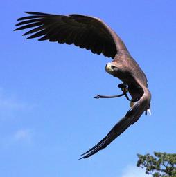 Keywords: eagle bird flying flight large brown wings blue sky background birds of prey wildlife predators hawk
