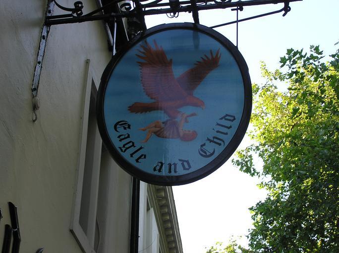 Keywords: Eagle and child Oxford.JPG Picture of The Eagle and Child pub logo in Oxford England Supposedly J R R Tolkien and C S Lewis met here Fotografía de la insignia del pub Eagle and Child en Oxford Inglaterra Supuestamente J R R Tolkien y C S Lewis se encontraban aquí self-photographed 2006-07-17 21 10 Gunnar Bach Pedersen Eagle and child Oxford cropped jpg 51 760615 -1 262054 Eagle and Child Oxford sign Bird-related signs Taken with Olympus C-750UZ GunnarBach Eagles in logos |