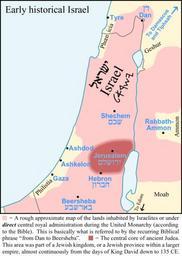 | Keywords: Early-Historical-Israel-Dan-Beersheba-Judea.png In this graphic about early historical Israel the pink area is a rough approximate map of the near-maximum boundaries of the lands that were inhabited by Israelites or under direct central royal administration during the United Monarchy period of ancient history according to the Bible -- excluding states such as Damascus Geshur Ammon Moab Edom and the Philistine city-states which sometimes acknowledged some degree of Israelite suzerainty or overlordship but were never integral or directly-administered parts of the unified Israelite kingdom of David or Solomon This is basically what is referred to by the Biblical phrase from Dan to Beersheba which occurs nine times in the Hebrew Bible / Old Testament -- at Judges 20 1 1 Samuel 3 20 2 Samuel 3 10 2 Samuel 17 11 2 Samuel 24 2 2 Samuel 24 15 1 Kings 4 25 1 Chronicles 21 2 and 2 Chronicles 30 5 So the passage 1 Kings 4 24-25 1 Kings 5 4-5 in Jewish verse numbering describes Solomon's larger empire with the phrase from Tiphsah to Gaza these being the northeasternmost and southwesternmost noteworthy cities that recognized some allegiance to Solomon Tiphsah was a trade outpost in northern Syria at the bend in the Upper Euphrates but the actual land where Judah and Israel dwelt in safety was described as being from Dan to Beersheba The dark red area in the graphic shows the central core of ancient Judea This area more or less the southern half of the west bank hill-chain roughly from Ramallah to Hebron or slightly north of Hebron was almost always part of a Jewish kingdom or a Jewish province within a larger empire for over a thousand years from the days of King David down to 135 CE The only cities shown on the map were capital cities or were important landmarks in demarcating ancient Israel or Judea The areas to the immediate south and east of the map frame were more sparsely inhabited with a lower proportion of settled agriculture so that boundaries were rather indefinite there The borders of the 1923-1947 British mandate territory i e the modern Israel + West Bank + Gaza are shown in grey Own based on visual inspection not scanning of a variety of sources the single most important source probably being the Administrative Districts of Solomon's Kingdom Map map no 113 on page 86 of the MacMillan Bible Atlas 3rd edition 1993 by Yohanan Aharoni Michael Avi-Yonah Anson F Rainey and Ze'ev Safrai ISBN 0025006053 and to a lesser degree the Kingdom of David Map map no 104 on page 80 2005-09 AnonMoos For a somewhat equivalent French map see File Map Israel Judea 926 BC-fr svg This graphic is also available in resizable vector PDF format on request various technical and font problems have made an SVG conversion difficult historical map Derived versions With alternate map title and elimination of map legend at bottom Image Early-Historical-Israel-Dan-Beersheba-Judea-Corrected png Chinese partial translation Image Early-Historical-Israel-Dan-Beersheba-Judea-Chinese png page edits 1 date/time username edit summary ---- 19 25 24 September 2005 en User AnonMoos †’Summary - additional explanation ---- 04 50 23 September 2005 en User AnonMoos other map ---- 19 12 14 September 2005 en User AnonMoos category ---- 16 05 13 September 2005 en User AnonMoos In this graphic about early historical Israel the pink area is a rough approximate map of the near-maximum boundaries of the lands that were inhabited by Israelites or under direct central royal administration during the United Monarchy period en wikipedia File upload history 12 57 19 September 2005 en User AnonMoos AnonMoos en User_talk AnonMoos Talk 860x1210 59529 bytes Added arrow pointing to location of Edom 16 05 13 September 2005 en User AnonMoos AnonMoos en User_talk AnonMoos Talk 860x1210 58639 bytes In this graphic about early historical Israel the pink area is a rough approximate map of the near-maximum boundaries of the lands that were inhabited by Israelites or under direct central royal administration during the United Monarchy period Maps of the Kingdom of Israel Maps of Philistia Maps of Palestine in 10th century BC |