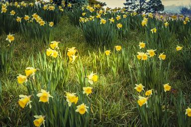 | Keywords: landscape field flower plant outdoor flowerbed Narcissus /nɑːrˈsɪsəs/ is a genus of predominantly spring perennial plants in the Amaryllidaceae (amaryllis) family. Various common names including daffodil,[notes 1] daffadowndilly, narcissus, and jonquil are used to describe all or some members of the genus. Narcissus has conspicuous flowers with six petal-like tepals surmounted by a cup- or trumpet-shaped corona. The flowers are generally white or yellow (orange or pink in garden varieties), with either uniform or contrasting coloured tepals and corona. Narcissus were well known in ancient civilisation, both medicinally and botanically, but formally described by Linnaeus in his Species Plantarum (1753). en.wikipedia.org/wiki/Narcissus_(plant) Narcissus /nɑːrˈsɪsəs/ is a genus of predominantly spring perennial plants in the Amaryllidaceae (amaryllis) family. Various common names including daffodil,[notes 1] daffadowndilly, narcissus, and jonquil are used to describe all or some members of the genus. Narcissus has conspicuous flowers with six petal-like tepals surmounted by a cup- or trumpet-shaped corona. The flowers are generally white or yellow (orange or pink in garden varieties), with either uniform or contrasting coloured tepals and corona. Narcissus were well known in ancient civilisation, both medicinally and botanically, but formally described by Linnaeus in his Species Plantarum (1753). en.wikipedia.org/wiki/Narcissus_(plant) |