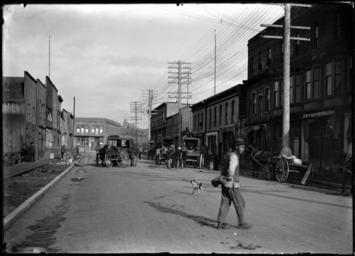 | Keywords: blackandwhite road monochrome outdoor architecture black and white Looking south west from north east corner of Hastings and Columbia streets. VPL 7234 content: Far left is the Hastings Rooming House and at centre is Woods Hotel (opened in 1907). In the distance, far right, is the Central School. Date: 190- Photographer/Studio: Timms, Philip SUBJECTS: Hotels, Schools, Buildings, Woods Hotel, Chinese Canadians More information on our historical photograph collection: www.vpl.ca/historicalphotos Looking south west from north east corner of Hastings and Columbia streets. VPL 7234 content: Far left is the Hastings Rooming House and at centre is Woods Hotel (opened in 1907). In the distance, far right, is the Central School. Date: 190- Photographer/Studio: Timms, Philip SUBJECTS: Hotels, Schools, Buildings, Woods Hotel, Chinese Canadians More information on our historical photograph collection: www.vpl.ca/historicalphotos |