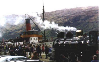 Keywords: Earnslaw 90TH.jpg en The TSS EARNSLAW Meets the Kingston Flyer at the Kingston Warf Own Motorau 2002 November 18th OTRS pending Larger geo lat -45 32873729372137 geo lon 168 71240615844727 TSS Earnslaw ship 1912