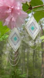 Keywords: earrings seed beads woven sterling silver triangle chain hand made craft handmade jewelery artistic accessories