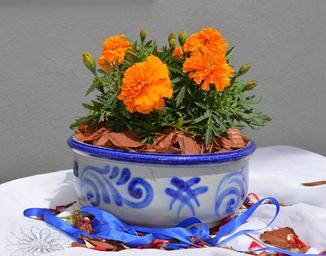 Keywords: earthenware ceramic grey blue pottery pattern flower arrangement