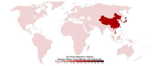 | Keywords: East Asian indigenous faiths (Shenism + Shinto + Muism + Thanism) by percentage.png A map showing the followers of the indigenous religions of East Asian nations Chinese Shenism Japanese Shinto Korean Sinism or Muism and Vietnamese Thanism by percentage in each country Note that the Chinese folk religion includes Taoism Self-made Percentages taken from different survey data available in articles of Wikipedia discussing the topic Chinese folk religion; Korean shamanism; Shinto; Vietnamese folk religion; religion in China; religion in Japan; religion in Korea; religion in Malaysia; religion in Singapore; religion in Taiwan; religion in Vietnam; religion in Xianggang 2014-03-15 User Khny Allowed to copy and distribute Religion maps of the world |