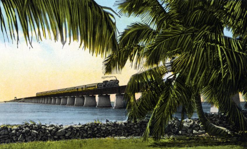 MAKE A MEME View Large Image Persistent URL: floridamemory.com/items/show/254985 Local call number: KOR2467 Title: East Coast Railway train crossing Moser Channel on the Key West extension of the Overseas Railroad Date: ca. 1920 Physical descrip: 1 postcard - col. - 9 ...
