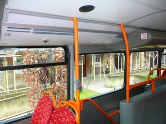 | Keywords: East-London-Transit-Bus-Ventilation.jpg East London Transit BRT scheme being shown to the public outside Ilford Town Hall on 24 January 2010 Seen here at the front just forward of the stairway are the ventilation grilles for the air cooling Note that this is not full air-conditioning Also seen are a PA system loudspeaker and a CCTV camera The service is operated by Blue Triangle and this is their bus WVL334 LX59 DDL a Volvo B9TL/Wright Eclipse Gemini 2 own Spsmiler 2010-01-24 Bus interiors in the United Kingdom Wrightbus Eclipse Gemini 2 on Volvo B9TL buses in the United Kingdom Blue Triangle East London Transit Buses in the London Borough of Redbridge |