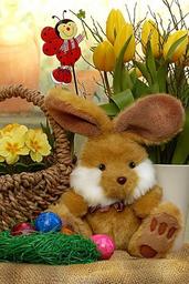 Keywords: easter bunny deco still life easter eggs spring flowers