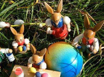 Keywords: easter bunny family paint egg large colorful meadow easter figures wood