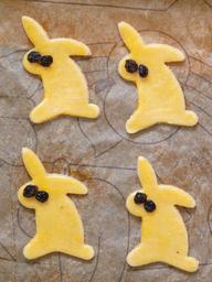 Keywords: easter easter bunny easter cakes rabbit bake dough ausstecherle recipe oven cookie fine pastry small cakes biscuit raisin mafioso waxed paper