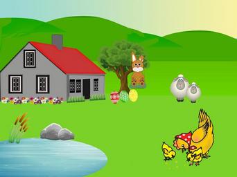 Keywords: easter easter eggs flowers spring nature pond hens chicks sheep rabbit house