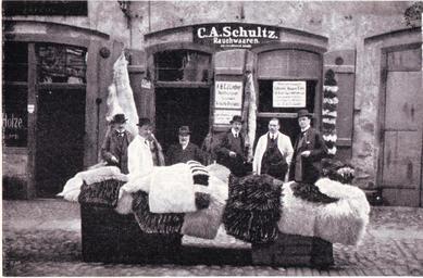 | Keywords: Easter fur fair in Leipzig, C. A. Schultz, 1905.jpg Rauchwaaren C A Schultz Carl August Schultz Brühl 45 zur Zeit der Oster-Pelzmesse 1905 in Leipzig Gegründet 1840 von Johann Gottlieb Schultz feierte das Pelzhaus Schultz 1965 sein 125jähriges Bestehen 1971 à bergabe des Gründungsbetriebs in Posen an den Bruder Hermann bald darauf siedelte Carl August nach Leipzig über Nachfolge durch den der Sohn der Kürschner Benno Schultz der 1899 die Leitung des Posener Betriebs übernahm den er drei Jahre später käuflich erwarb und bis nach dem Zweiten Weltkrieg erhielt Erst die beiden Söhne mussten die Heimat verlassen Kürschnermeister Hans Schultz eröffnete nach dem Krieg auf der Niddastraße 54 in Frankfurt am Main ein Unternehmen mit Pelzkonfektion und Rauchwarenhandel Carlheinz Schultz eröffnete in München auf der Kaufinger Straße 10 ein Detailgeschäft für feine Pelzwaren Beide Betriebe bestanden noch 1965 <small>Quelle Die Pelzwirtschaft 1 Januar 1965 S 107</small> Own possession 1905 author PD-old DEFAULTSORT Schultz C A Fur wholesale dealers in Leipzig Brühl 45 Leipzig Tibet lamb fur-skins Intermediate furs Fur fairs in Leipzig 1905 Fur pieces Die Pelzwirtschaft |