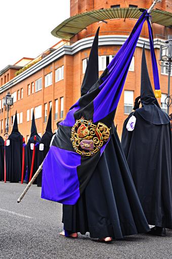 Keywords: easter seville andalusia spain procession brotherhood sisterhood nazarene banner logo festival religion believer beliefs catholics tradition traditional brother