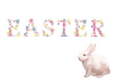 Keywords: easter spring bunny rabbit holiday colorful celebrate season seasonal white background template flowers