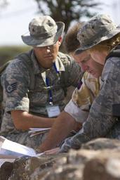 | Keywords: Eastern Africa Standby Orce Fleet Training Exercise DVIDS228193.jpg en British Army Lt Col Stephen Segrave center gives field exercise guidance to Master Sgt Carlotta Holley right and Staff Sgt Ronald Lafoose both members of the U S Air Force and part of the public affairs team attached to Combined Joint Task Force - Horn of Africa Camp Lemonnier on a rock ledge outside of the Eastern African Standby Brigade Joint Exercise Cell at the Arta Military Academy in Djibouti Dec 1 2009 The Eastern African Standby Brigade Field Training Exercise is multinational multidimensional field training exercise that is designed to test the Eastern Africa Standby Force operating capabilities This series of field exercises are being conducted in the host nation of Djibouti Nov 29 through Dec 4 2009 2009-12-01 Chief Petty Officer Robert Gallagher https //www dvidshub net/image/228193 091201-N-+++++-006 2009-12-01 11 55 DJIBOUTI DJ PD-USGov-Military-Navy Combined Joint Task Force - Horn of Africa Camp Lemonnier Images from DoD uploaded by Fæ |