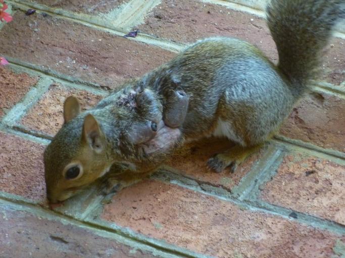 Keywords: Eastern Gray Squirrel suffering from warbles.jpg Dieses Grauhörnchen ist von Fliegenlarven der Gattung Cuterebrinae Familie Oestridae Dasselfliegen befallen und bildet Dasselbeulen aus Der Befall ist örtlich und normalerweise nicht dauerhaft schädigend für das Hörnchen Sobald die Larven schlüpfen heilen die Wunden gewöhnlich obwohl sie mit Bakterien infiziert werden können oder durch Entzündung Abszesse bilden können Dieser Zustand ist relativ häufig und kann nicht auf andere Tiere übergehen kann jedoch andere Tiere treffen Es ist auch bei Haus- und Nutztieren “ wie Vieh “ möglich wobei dies aufgrund heutiger Parasiten-Steuerungsverfahren nicht häufig geschieht Fotografiert in Midlothian Virginia USA en This squirrel is infested with fly larvae of the genus Cuterebrinae family Oestridae a condition also known as warbles The infection is localized and not usually permanently harmful to the squirrel Once the larvae hatch the wounds will usually heal although they can become infected with bacteria and form abscesses The condition is relatively common and cannot spread to other animals Other animals can also become infected with warbles and it is possible to see cases in domestic animals such as cattle although nowadays with more fly and parasite control methods it doesn't happen very often Photographed in Midlothian VA own Martin Bennett 2009-10-04 Sciurus carolinensis Oestridae |
