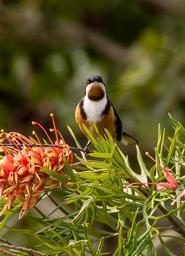Keywords: eastern spinebill spinebill acanthorhynchus tenuirostris bird nectar honeyeater brown white black native wild grevillea flower queensland australia