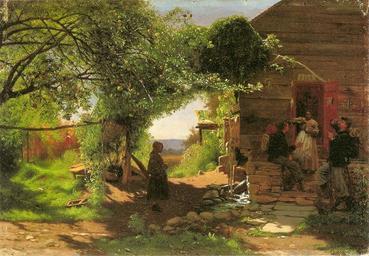 | Keywords: Eastman Johnson - Union Soldiers Accepting a Drink - ebj - fig 75 pg139.jpg Eastman Johnson - Union Soldiers Accepting a Drink - Oil on canvas - 10 75 x 15 25 in - c 1865 - Scanned from Eastman Johnson Painting America - fig 75 pg 139 Scanned from Eastman Johnson Painting America Creator Eastman Johnson Author died more than 70 years ago - public domain PD-old-100 Paintings by Eastman Johnson Soldiers life during the American Civil War | ||||