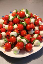Keywords: eat kebab mozzarella tomato skewers food