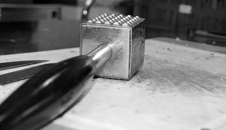 Keywords: eat meat hammer metal black and white food fry steak