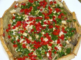 Keywords: eat pizza cake food meal restaurant vegetable pizza leek cheese vegetarian