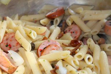 Keywords: eat pork sausage mushrooms stockschwaemchen onions noodles