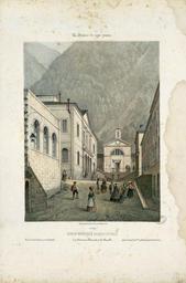 | Keywords: Eaux-Bonnes (Basses-Pyrénées) - L'établissement Thermal et la Chapelle - Fonds Ancely - B315556101 A MERCEREAU 7 018.jpg Impression en 3 coul par Frick frères à Paris Fait partie d'un ensemble de recueils de lithographies de Mercereau composés de lithographies provenant de La France de nos jours vaste suite publiée par livraisons de 1853 à 1876 et comprenant 475 planches en deux tirages l'un à deux teintes noir et bistre l'autre en couleurs Les libraires ont réuni ces planches en albums de composition variable quant au nombre de planches et aux dessinateurs Asselineau Mercereau Maurice Deroy etc Un titre Les Pyrénées par Ch Mercereau; Bagnères-de-Luchon par Ch Mercereau était frappé sur le plat supérieur de la reliure de l'album ainsi que le nom du Libraire pour lequel il était réalisé La plupart des recueils de ces planches pyrénéennes portent le nom de Sajous libraire à Bagnères-de-Luchon Pl 1 à 18 numérotées de 370 à 386 Pl 374 pl 5 et 6 en double -- Pl 19 20 et 21 numérotées respectivement 407 415 et 418 Ces trois pl ont été dessinées et lithographiées par Asselineau -- Pl 22 23 et 24 numérotées 438 439 et 440 -- Pl 22 lith par Aubrun -- Pl 25 numérotée 441 -- Pl 26 à 40 numérotées de 327 à 341 -- Pl 41 à 46 numérotées de 363 à 368 -- Pl 47 numérotée 369 -- Pl 48 num 292 -- Pl 49 et 50 num 264 et 265 -- Pl 51 et 52 num 268 et 269 -- Pl 53 à 55 num de 293 à 295 -- Pl 56 num 300 -- Pl 57 à 59 num de 307 à 309 -- Pl 60 à 70 num de 316 à 326 -- Pl 71 num 63 dessin et lith d'Asselineau imprimerie Destouches -- Pl 72 et 73 num 87 et 88 dessin et lith d'Asselineau imprimerie Destouches -- Pl 74 num 124 signée Lebreton éditée chez Lalonde à Paris et imprimée chez Becquet frères à Paris -- Pl 75 num 161 dessin et litho d'Asselineau imprimerie Destouches --Pl 76 à 78 num de 207 à 209 -- Pl 79 à 81 num de 211 à 213 -- Pl 82 num 220 dessin et lith de Maurice imprimerie Destouches -- Pl 83 à 86 num de 226 à 229 -- Pl 87 et 88 num 234 et 235 -- Pl 89 à 91 num de 273 à 275 -- Pl 92 et 93 num 290 et 291 Pièces jointes 6 pl sépia dont certaines sont des doubles du recueil de Mercereau Les cinq premières planches sont numérotées respectivement 318 321 324 331 386 La dernière planche n'est pas extraite de La France de nos jours mais de L'Espagne pittoresque et monumentale Ces six planches sont signées Mercereau éditées chez Sinnet et imprimées chez Frick frères Ancely René 1876 - 1966 Possesseur fre public domain domaine public B315556101_A_MERCEREAU_7_018 jpg image/jpeg 1 f de pl lithogr ; 31 cm oblong Frick frères Imprimeur Sinnet F Éditeur http //numerique bibliotheque toulouse fr/collect/general/index/assoc//ark /74899/B315556101_A_MERCEREAU_7_018 dir/B315556101_A_MERCEREAU_7_018 jpg Bibliothèque municipale de Toulouse A-MERCEREAU 7-18 Creator Charles Mercereau http //catalogues toulouse fr/web2/tramp2 exe/do_keyword_search/log_in setting_key BMT1 servers 1home query p001642 St Jean-de-Luz intérieur de l'Eglise St Jean-de-Luz le Château de l'Infante Biarritz Vue générale prise du Phare Château de Mauvesin près Bagnères-de-Bigorre Hautes Pyrénées Bagnères de Bigorre Hautes Pyrénées - Intérieur de l'Eglise des Carmes en couleurs Bagnères de Bigorre Hautes Pyrénées - Intérieur de l'Eglise des Carmes Bagnères-de-Bigorre - Eglise et couvent des Carmes Bagnères-de-Bigorre Hautes-Pyrénées - Tour des Jacobins Cascade et Pont de Magenta Vallée de l'Esponne Hautes Pyrénées Cascade de Trémes-Aïgues Vallée de Grip Hautes Pyrénées St Sauveur Hautes Pyrénées - Le Pont Napoléon Bayonne - Eglise St André Arreau et la Vallée d'Aure Hautes Pyrénées - Vue prise au dessus de la route du Col d'Aspin Auch - Vue prise sur les bords du Gers Auch - Vue de la Cathédrale Auch - Intérieur de la Cathédrale Bagnères-de-Bigorre - Vue Générale prise de la Fontaine ferrugineuse Nantes - Vue de l'Eglise Ste Croix Le Croisic - Plage des Baigneurs et Etablissement de Bains Le Folgoët - Vue de l'Eglise Brèche de Roland prise de Gèdres Hautes Pyrénées Chapelle du couvent de Pouëlahun i e Pouey Lahun - Vallée d'Azun Hautes Pyrénées Eglise des Templiers à Luz Le Pont de Scia - Route de Luz à Gavarnie Hautes-Pyrénées Vue de l'établissement de la Raillière près Cauterets Hautes-Pyrénées Vue générale de Cauterets prise du Mamelon Vert Hautes-Pyrénées Vue du Fort de Lourdes Hautes-Pyrénées Vue d'Argelès-de-Bigorre Hautes-Pyrénées Vue de St Sauveur Hautes-Pyrénées Le Pas de l'Echelle Route de Gavarnie Hautes-Pyrénées Fond de la Vallée d'Argelès prise de la terrasse de St Savin Hautes-Pyrénées Place Grammont à Pau Basses-Pyrénées Vue générale des Eaux-Bonnes Basses-Pyrénées Barèges et la Vallée du Bastan Hautes-Pyrénées Chute supérieure du Pont d'Espagne Hautes-Pyrénées La grotte miraculeuse à Lourdes Hautes-Pyrénées Eglise de Bétharram et Pont de Lestelle Basses Pyrénées Cascade du Cerizet Près Cauterets Hautes-Pyrénées Pic du Midi d'Ossau 2885m Basses Pyrénées - Vue prise du 3e plateau de Bious-Artigues Pau - Vue prise de la terrasse du Château Toulouse - Cloître du Musée Galerie du Moyen-Age Pau - Vue du Château prise du Parc Toulouse - Cloître du Musée et Clocher des Augustins Toulouse - La maison de pierre fragment de la façade Toulouse - Intérieur de St Sernin St Jean-de-Luz Fort du Socoa Toulouse - Vue du Capitole Bordeaux Vue de la Porte du Caillau i e Cailhau Bordeaux Porte de la grosse Cloche Bordeaux Vue des Quinconces Bordeaux - Vue de la Tour et de l'Eglise de St Michel Toulouse - Vue du Pont de pierre prise du Quai de Brienne Toulouse - Abside de l'Eglise de St Sernin de l'an 1097 Toulouse - Choeur de la Cathédrale St Etienne Rouen - Hôtel de Bourgtheroulde Biarritz - Vue des Bains Napoléon et du Casino Biarritz - Vue des Bains du Port Vieux Biarritz - Vue de l'Entrée de la Ville à l'arrivée de Bayonne Le Lac Bleu Hautes-P