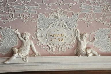 Keywords: Eberbach Mönchsrefektorium Decke Jahreszahl.jpg Kloster Eberbach Mönchsrefektorium own 2015 WolfD59 Mönchsrefektorium Kloster Eberbach Stuccos in Hesse
