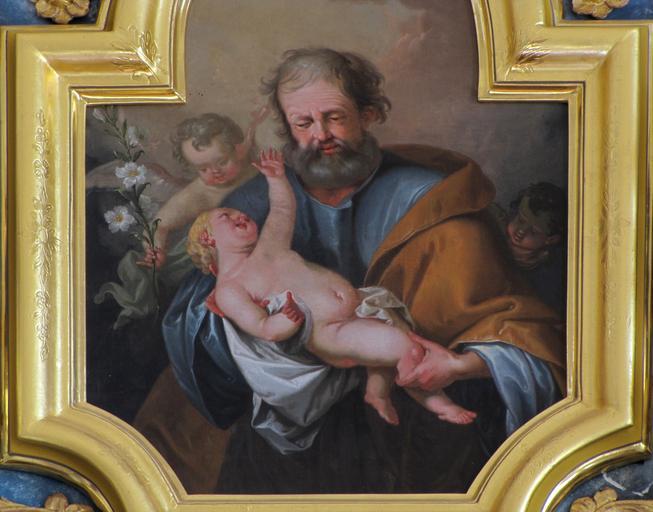 | Keywords: Ebersmunster Abbatiale171.JPG Alsace Bas-Rhin Ebersmunster Église abbatiale Saint-Maurice Autel secondaire de Sainte-Odile XVIIIe Tableau du couronnement saint Joseph et l'enfant Jésus 1807 own 2015 Ralph Hammann cc-by-sa-4 0 Artwork / Œuvre d'art / Kunstwerk saint Joseph et l'enfant Jésus XVIIIe oil canvas Abbatiale Saint-Maurice Ebersmunster Autel secondaire de Sainte-Odile IM67007589 object history Ces tableaux d'autels signés par Franz Joseph Stoeber celui de sainte Scholastique date de 1781 celui de sainte Odile de 1807 remplacent les œuvres d'origine ornant les autels retables secondaires de 1730 ; les tableaux des couronnements ne sont pas signés mais datent également du 18e siècle other versions Ralph Hammann PD-old accession number Taken with Canon PowerShot SX20 IS Photographs of Ebersmunster by Ralph Hammann Autel de Sainte-Odile Ebersmunster Objets monuments historiques in Bas-Rhin church paintings Baroque church paintings in Alsace Paintings of Christian saints in France 19th-century church paintings in Alsace 1807 oil on canvas paintings in France 1807 works in Alsace Saint Joseph and Jesus Christ as a baby Paintings of Saint Joseph in France |