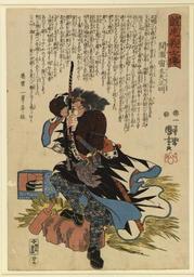 | Keywords: Ebiya Rinnosuke - Seichu gishi den - Walters 9548.jpg Walters Art Museum artwork Creator Ebiya Rinnosuke Mase Chudayu Masa-aki full face aiming an arrow between 1847 1848 late Edo pigments mulberry paper cm 36 2 25 5 accession number 95 48 7911 Mr and Mrs C R Snell Jr date and mode of acquisition unknown Walters Art Museum Gift of Mr and Mrs C R Snell Jr 1986 Signature Ichiyusai Kuniyoshi ga The Nature of Loyalty Japanese Warrior Prints of the Nineteenth Century The Walters Art Gallery Baltimore 1989 place of origin Edo present-day Tokyo Japan Walters Art Museum license 2D Japanese prints in the Walters Art Museum Historic samurai prints Ebiya Rinnosuke Media contributed by the Walters Art Museum needs category review |