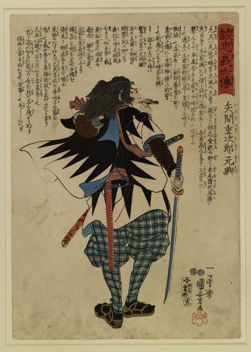 | Keywords: Ebiya Rinnosuke - Seichu gishi den - Walters 9517.jpg Walters Art Museum artwork Creator Ebiya Rinnosuke Yazama Jujiro Motooki blowing a signal whistle a drawn sword in his other hand between 1847 1848 late Edo pigments mulberry paper cm 36 2 25 5 accession number 95 17 5328 Mr and Mrs C R Snell Jr date and mode of acquisition unknown Walters Art Museum Gift of Mr and Mrs C R Snell Jr 1986 Signature Ichiyusai Kuniyoshi ga The Nature of Loyalty Japanese Warrior Prints of the Nineteenth Century The Walters Art Gallery Baltimore 1989 place of origin Japan Walters Art Museum license 2D Japanese prints in the Walters Art Museum Historic samurai prints Ebiya Rinnosuke Media contributed by the Walters Art Museum needs category review |