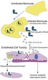 | Keywords: Ebola Pathenogensis path.svg en Host immune responses to Ebola virus and cell damage due to direct infection of monocytes and macrophages cause the release of cytokines associated with inflammation and fever Infection of endothelial cells also induces a cytopathic effect and damage to the endothelial barrier that together with cytokine effects leads to the loss of vascular integrity Transient expression of Ebola virus GP in human umbilical vein endothelial cells or 293T cells causes a reduction of specific integrins primary molecules responsible for cell adhesion to the extracellular matrix and immune molecules on the cell surface Cytokine dysregulation and virus infection may synergize at the endothelial surface promoting hemorrhage and vasomotor collapse Ebola__Pathenogensis svg 2009-09-20 03 26 UTC Ebola__Pathenogensis svg ChyranandChloe derivative work ChyranandChloe <span class signature-talk >talk</span> Ebola Pathenogensis path-hu svg text to path inkscape Ebola__Pathenogensis svg Ebola pathogenesis 293T cells |