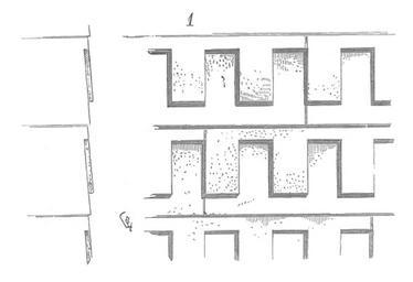 | Keywords: Ecailles.eglise.Thaon.png La curieuse église de Thaon près de Caen nous montre une partie de ses parements extérieurs décorés d'écailles de forme carrée rappelant ces revêtements en bardeaux si fort en usage dans les constructions privées construites en pans-de-bois Ces écailles sont quelquefois superposées ou le plus souvent contrariées c'est-à-dire pleins sur vides ainsi que l'indique la fig 1 Église Saint-Pierre de Thaon | ||||