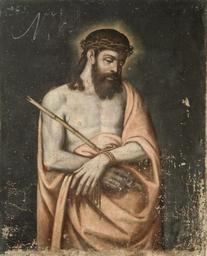 | Keywords: Ecce Homo, copia de un original de Tiziano. (Real Academia de Bellas Artes de San Fernando).jpg La obra representa a Jesucristo coronado de espinas y llevando una caña oil on canvas Size cm 82 102 Institution Real Academia de Bellas Artes de San Fernando http //ceres mcu es/pages/Main accession number 0362 http //ceres mcu es/pages/Main PD-old-100 Paintings of the Ecce Homo in Spain Paintings after Titian Paintings in the Royal Academy of Fine Arts of San Fernando | ||||