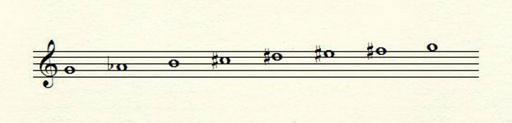 Keywords: Echelle enigmatique en sol.png fr Échelle énigmatique en sol it Scala enigmatica in sol en Enigmatic scale in G Own ma pomme 2009 Musical scales in G