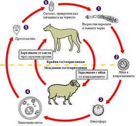 Keywords: Echinococcus Life Cycle bg.png en Echinococcus Life Cycle in bulgarian bg Цикъл на Ñ Ð°Ð·Ð²Ð¸Ñ‚Ð¸Ðµ Ð¿Ñ Ð¸ ехинококозата own Izvora Echinococcus life cycle