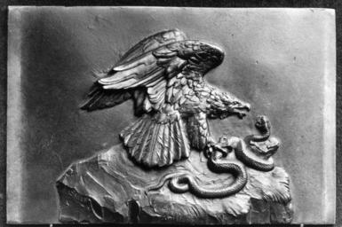 Keywords: Eck et Durand - Eagle and Snake - Walters 27189.jpg Walters Art Museum artwork Sculptor Creator Antoine-Louis Barye Founder This plaque was intended to be mounted on a piece of furniture or set in the base of a clock The reliefs of the ferocious eagles attacking their prey are in their intense drama closely associated with early 19th-century Romanticism This particular example was cast by the foundry Eck et Durand for the firm of silversmiths Fannière Frères modeled ca 1824-1826 bronze with dark brown patina cm 10 6 15 7 1 7 accession number 27 189 34740 William T Walters Baltimore prior to November 1889 He may have purchased this relief from Fannière Frères who lent a cast of this subject no 387 to the Paris Exposition Barye Henry Walters city Baltimore Walters Art Museum Henry Walters Acquired by William T Walters before 1889 Signature Stamped before casting in the model beneath the rocks on left side BARYE; Mark Incised FF for Fannière Frères Exposition Barye École des beaux-arts Paris Paris; École des beaux-arts Paris Paris 1875-1889 The Works of Antoine-Louis Barye American Art Gallery New York New York 1889-1890 Untamed The Art of Antoine-Louis Barye The Walters Art Museum Baltimore; Philbrook Museum of Art Tulsa; The Henry Morrison Flagler Museum Palm Beach 2007-2008 place of origin Paris France Walters Art Museum license Fonderie Eck et Durand Media contributed by the Walters Art Museum needs category review Collections of the Walters Art Museum Sculptures by Antoine-Louis Barye Eagles and snakes in art