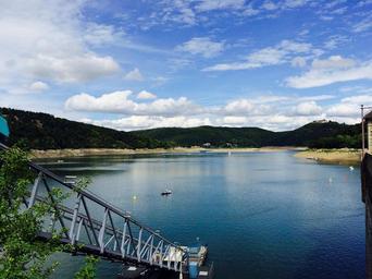 Keywords: edersee overview low tide lake river beach summer holidays mountains boat trip