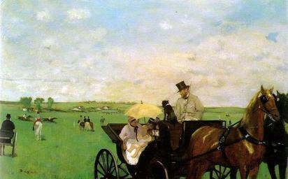 | Keywords: Edgar Degas, Aux courses en province (At the Races in the Country), c. 1872.jpg Artwork Q3660765 creator Edgar Degas ca 1872 oil canvas cm 36 5 55 9 institution Museum of Fine Arts Boston Degas ~ lower left signature object history credit line accession number repro from art book <gallery>File Degas - Kutsche beim Rennen jpg</gallery> PD-old-auto-1923 1917 Paintings of horse racing by Edgar Degas umbrellas in art leisure in the 19th century Paintings by Edgar Degas in the Museum of Fine Arts Boston |