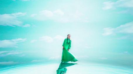 Keywords: edge of the world walk on water girl green dress water ocean sky photoshoot summer girls view model beauty journey person sunny beautiful russian photo nature blue sky