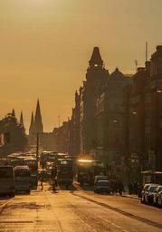 Keywords: edinburgh princess street shopping street transport cars buses street in edinburgh sunset