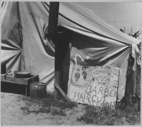| Keywords: Edison, Kern County, California. Close-up of barber shop in migratory potato pickers camp. ... Note . . . - NARA - 521785.jpg Scope and content Full caption reads as follows Edison Kern County California Close-up of barber shop in migratory potato pickers camp Note the equipment General notes 521785 Local identifier 83-G-41541 Department of Agriculture Bureau of Agricultural Economics Division of Economic Information ca 1922 - ca 1953 NARA-Author Lange Dorothea 1895-1965 Photographer 1372774 <br /> Still Picture Records Section Special Media Archives Services Division NWCS-S National Archives at College Park 8601 Adelphi Road College Park MD 20740-6001 1940-04-11 Record group Record Group 83 Records of the Bureau of Agricultural Economics 1876 - 1959 Record group ARC 412 Photographic Prints Documenting Programs and Activities of the Bureau of Agricultural Economics and Predecessor Agencies compiled ca 1922 - ca 1947 documenting the period ca 1911 - ca 1947 Series ARC 521048 File unit File unit ARC Variant control numbers NAIL Control Number NWDNS-83-G-41541 Other versions <gallery> File Edison _Kern_County _California _Close-up_of_barber_shop_in_migratory_potato_pickers_camp _ _Note_ _ _ _-_NARA_-_521785 tif tif File Edison _Kern_County _California _Close-up_of_barber_shop_in_migratory_potato_pickers_camp _ _Note_ _ _ _-_NARA_-_521785 jpg jpg </gallery> NARA-cooperation PD-USGov Dorothea Lange History of Kern County California |