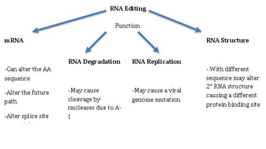 Keywords: Editing.PNG en Summary of the various events that RNA editing can cause Own Sryuu 2009-03-30 Check categories 2009 April 4 en wikipedia RNA_editing 5 Biotechnology Genetics Molecular biology Nucleotide metabolism