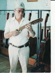 Keywords: Edmundo Nunez.jpg en Master Edmundo Nunez playing a charango at the shop es Maestro Edmundo Nunez probando un charango en el taller Own William Nunez Crafts of Ecuador Luthiers Charangos