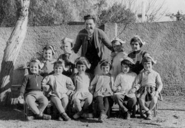 | Keywords: argentina mission kindergarten children blackandwhite monochrome outdoor black and white Caption: 1959. Edna Good and the children in her Recreo Infantil (Kindergarten) in Carlos Paz, Cordoba, Argentina. Citation: Mennonite Board of Missions. Photographs. Argentina, 1942-1963. IV-10-7.2 Box 1 folder 41, photo #17. Mennonite Church USA Archives - Goshen. Goshen, Indiana. Caption: 1959. Edna Good and the children in her Recreo Infantil (Kindergarten) in Carlos Paz, Cordoba, Argentina. Citation: Mennonite Board of Missions. Photographs. Argentina, 1942-1963. IV-10-7.2 Box 1 folder 41, photo #17. Mennonite Church USA Archives - Goshen. Goshen, Indiana. |