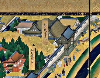 | Keywords: Edo l313.jpg TOP OF THIRD PANEL Left Screen Tameike Pond Hie Sanno Shrine and shops in front of it Ii Kamon no kami residence View of Edo Edo zu pair of six-panel folding screens 17th century http //www rekihaku ac jp/e_gallery/edozu/l31 html century 17 Author PD-art View of Edo folding left screen 17th century |