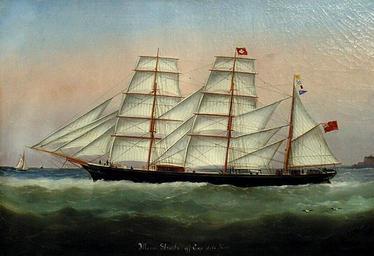 | Keywords: Édouard Adam - ‚Menai Straits‘ off Cape de la Heve.jpg Édouard Adam 1847-1929 The British Barque under full sail passing Cape Heve near Le Havre a pilot boat arriving in the background 1878 Technique oil canvas cm 62 92 object history credit line signed lower right Ed Adam dated 1878 and further inscribed Havre accession number http //www fineartemporium com/se-Adam-E-Menai-image htm fineartemporium com PD-old-auto-1923 1926 DEFAULTSORT Adam Edouard; Menai Straits 1878 Édouard Adam 19th-century sailing ships in paintings Menai Straits ship 1877 1878 paintings Paintings with signatures lower right |